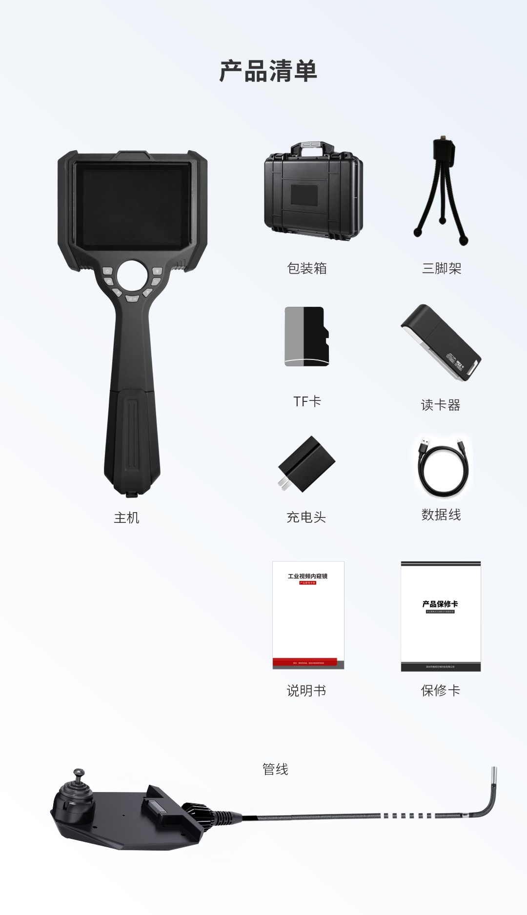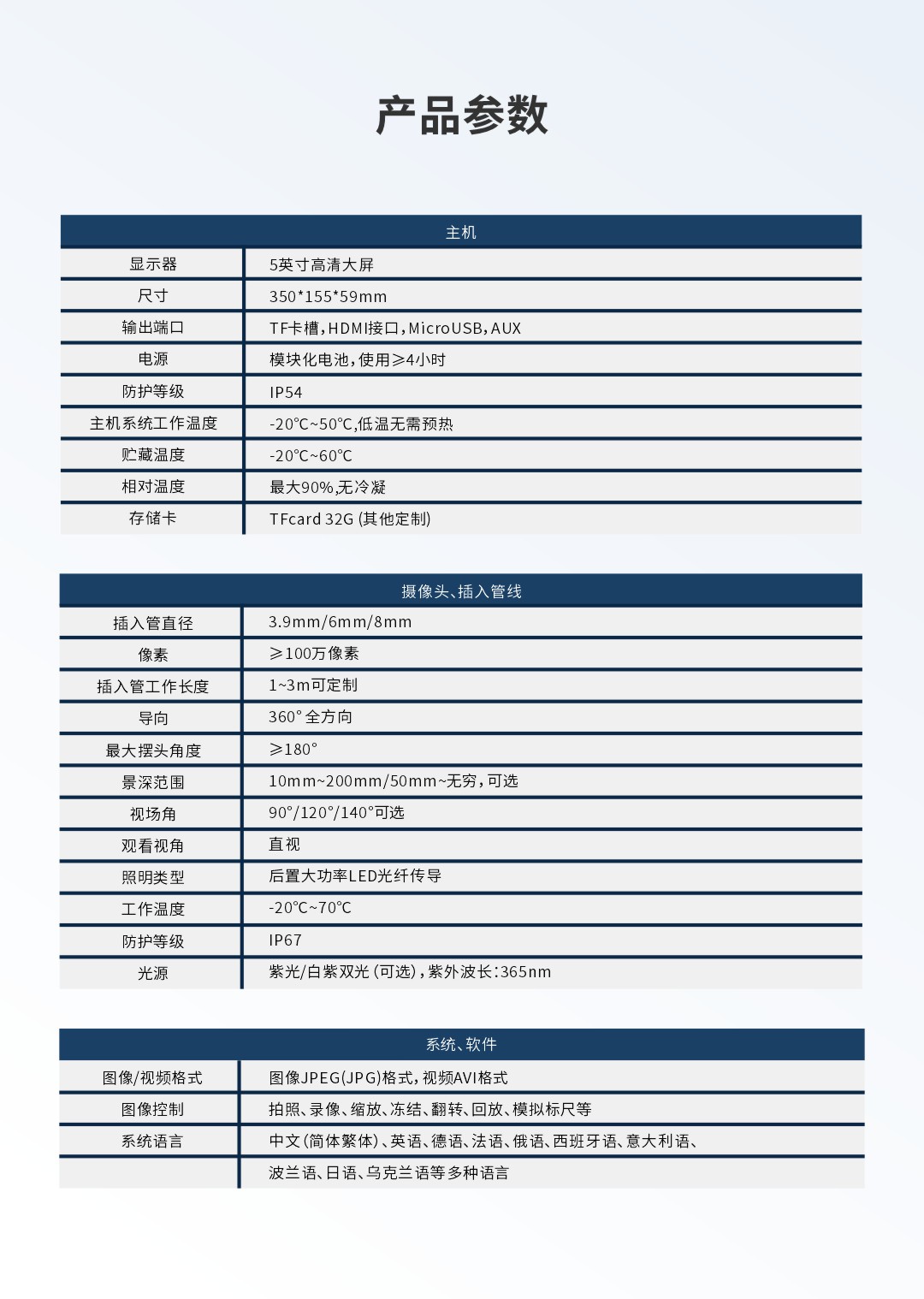 優(yōu)勢特點(diǎn):紫白雙光源;360°全方位擺頭;百萬高清攝像頭;工業(yè)探傷檢測專用